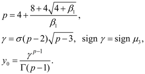 To each of these cases there corresponds one of the basic types of Pearson’s curves – I, IV and VI. Other nine types and normal distribution curve – their private or boundary cases. Most often in an expert there are first seven types of Pearson’s curves. On Fig. 1 the graph for definition of type of a curve on parameters