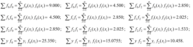 After substitution of numerical values of coefficients the system of Gauss’normal equations becomes: